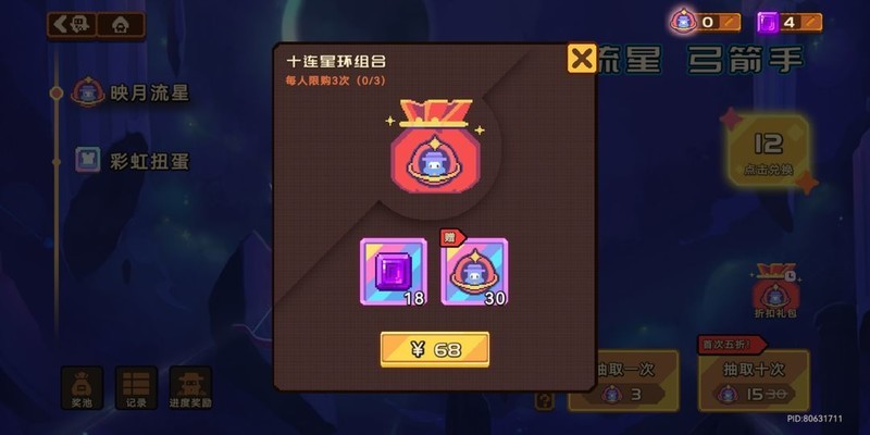 即使多出18颗宝石,流星礼包也并不划算,毕竟其价值仅十余元,价格还贵了38元。相比之下,购买月卡不仅能够直接享受两个礼包的内容,还能省下68元,同时额外获得80彩虹币和大量金币。虽然可以再抽一次十连,但这些多出来的资源在68元的差距面前几乎可以忽略不计。而且目前只有月卡和礼包能获得彩虹币,想继续抽的话,恐怕得等上30天。