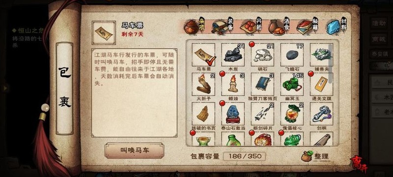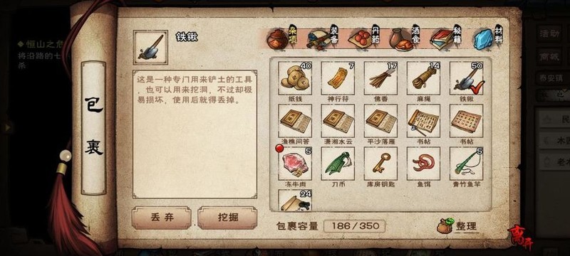 部分无法采集的道具需提前备齐,如烧刀子20、纸钱20、绳索10、蜡烛5、火折子5、铁锹30、鱼竿6、每日鱼饵40、文房四宝20、蛇胆30、牛黄10、虎骨30、每日米5、葱蒜各5。这些物品建议尽早准备。而一些可临时获取的资源则无需过早筹备,视情况现场收集即可,合理规划能更高效利用时间和物资。