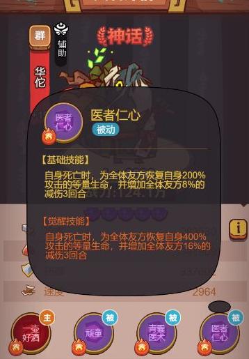 华佗担任该阵容中的2号位,贾诩则主要用于凑齐群雄阵营的增益效果。他本身作用有限,主要在被献祭时可恢复少量兵力,并提供持续3回合的减伤效果。此关卡缺乏控制技能,但敌方输出极高,需依靠减伤和回血保障生存。