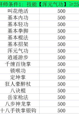 八步神龙掌需浑元气功达百级,定坤掌须修至二百五十级以上方可习得。