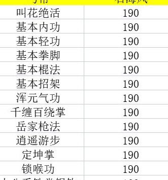 岳家枪法:需基本棍法达到20级以上方可掌握。