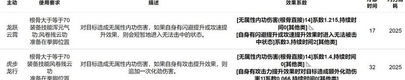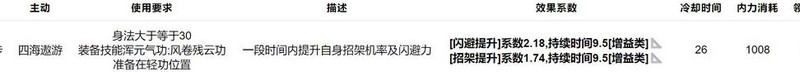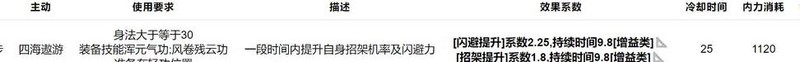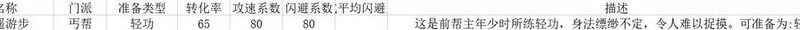 逍遥游步:中等系数,低转时省资源过渡佳,适合初学者使用的入门武学。