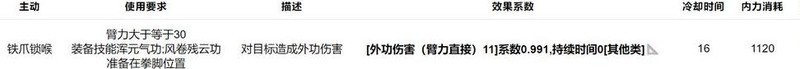 十八手铁掌银钩缺乏配套招式,过渡生硬,且无特殊技能加成。