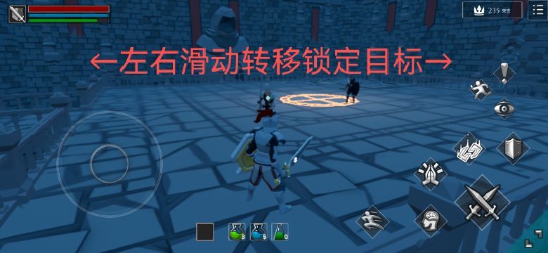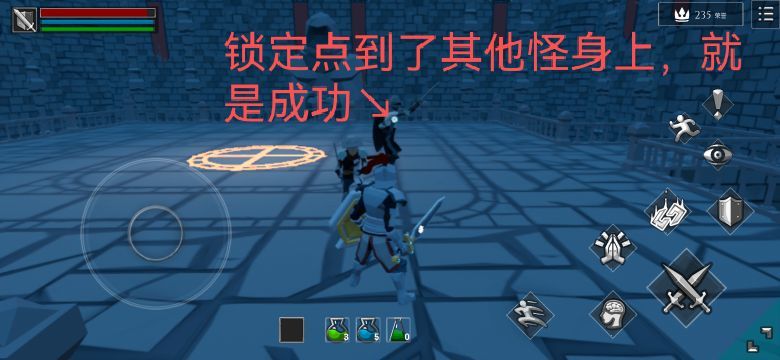 此外,点击敌人也可实现锁定与切换目标,如迷雾森林洞穴的隐藏关卡虽无法使用锁定键,但点击仍可完成锁定操作。