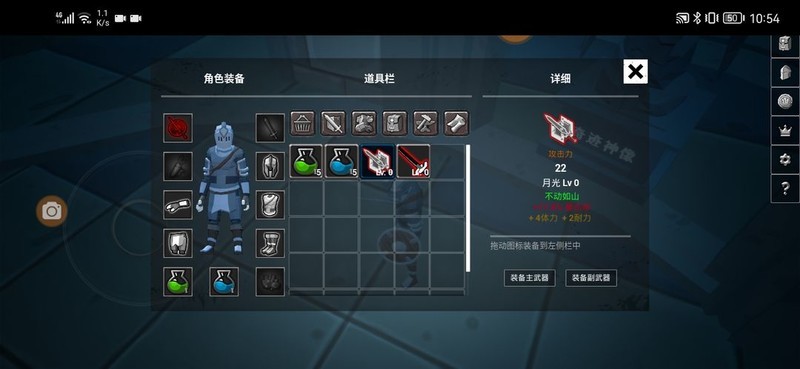 两百灵魂、药水,以及带有不动如山技能的月光片手剑几乎是必备配置,但由于技能随机性较大,因此需要进行相应调整和操作。