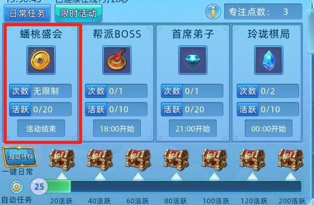 蟠桃盛会每日举行一次,等级达到80级以上即可参加。活动时间为每天中午12:00至12:10,参与不仅能获取丰厚经验奖励,还能获得大量充值币。这一活动备受玩家喜爱,因其可免费领取珍贵道具,极具吸引力,是每日不可错过的精彩内容。