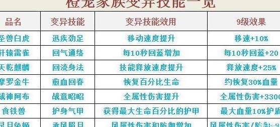 橙色宠物变异后获得独特第三技能,具体特性详见下图。