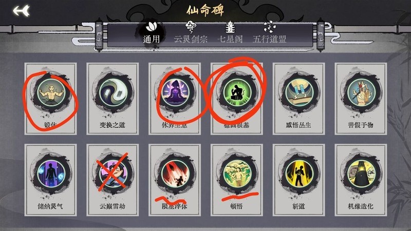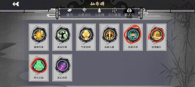 变种念慈连败锻体:优先搜两轮逍遥曲,三张牌时即刻修炼至36修为止,不直接采用念慈摆法。金丹之前避免使用崩拳获取气势,负重可适当积累,待体魄上限达56后,一轮负重可轻松突破40+,快速进入化神阶段。