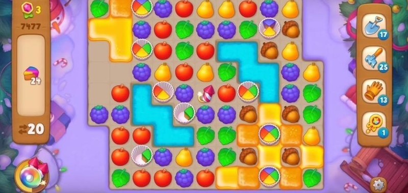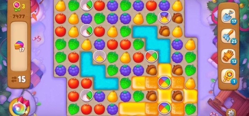 接下来需匹配元素消除蛋糕,通过合成道具可一次性清除多块。
