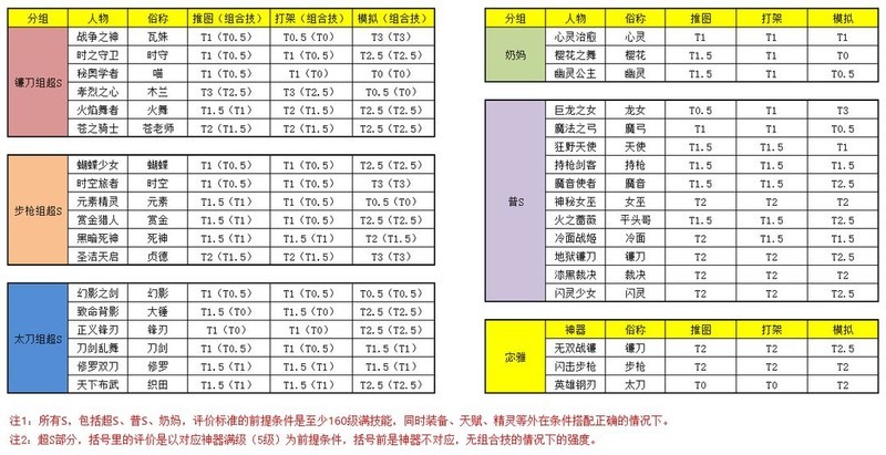 除幻影、锋刃、大锤外,其他超S级角色不作为判定标准。