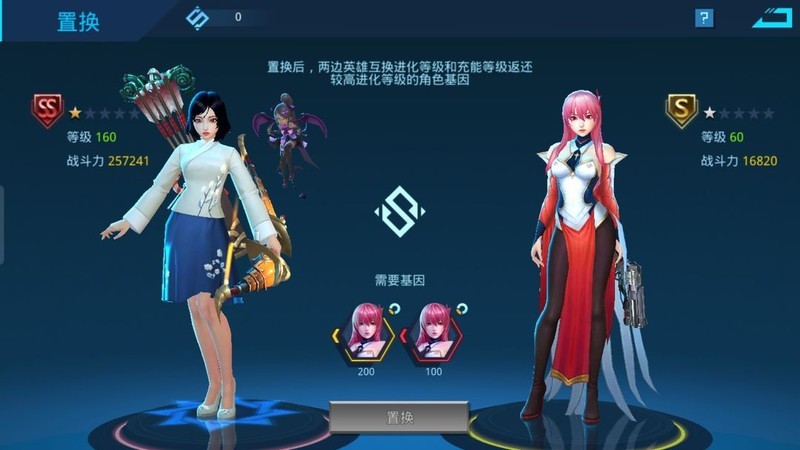 置换规则3:置换后双方星级与等级互换,本体基因数量保持不变,天赋和无人机等级将重置。