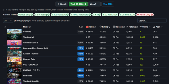 欢迎查阅2026年2月9日发布的Steam用户评价观察榜单。本榜单聚焦于Steam平台近期发售的付费游戏,筛选标准为:评测数量超过100条,且愿望单收藏人数逾1000人。