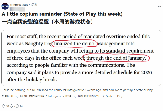 当时消息传出后,业界普遍推测该演示版将用于向公司高层及合作方汇报开发成果,以评估项目整体进度与方向。一位Reddit用户指出:“星际:异端先知的演示版恰好在两周前完成,而State of Play的举办时间随即公布,两者在时间上的接近确实引人联想。”也有观点认为,该演示版仅限内部使用,主要功能在于开发复盘与决策支持,并不意味着会面向公众呈现。