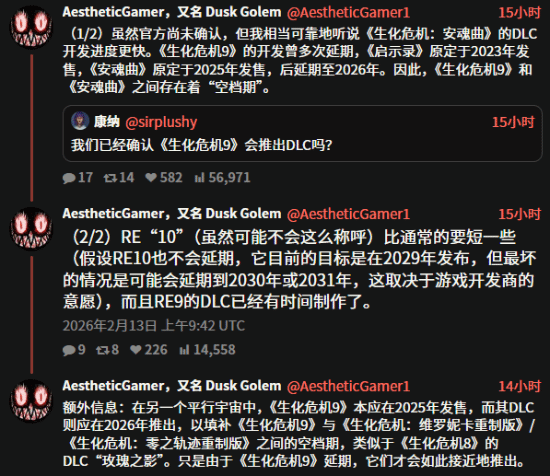 据透露,该项目当前设定的目标发售年份为2029年。但开发进度存在不确定性,实际推出时间可能延后至2030年,极端情况下或推迟至2031年。此外,生化危机9:安魂曲的扩展内容也已进入筹备阶段,相关工作与新作开发并行推进。
