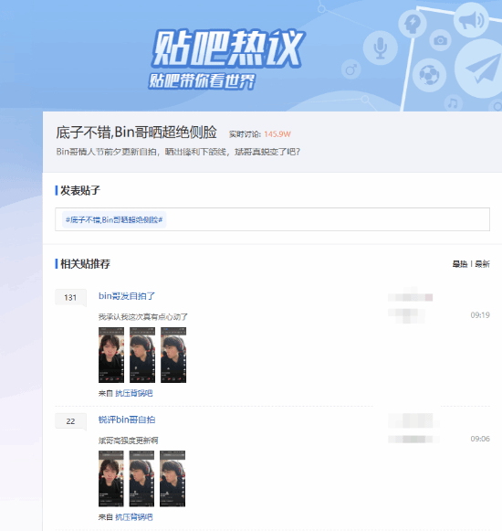 2026年情人节前夕,BLG战队选手Bin在个人社交平台发布一张侧脸自拍照,迅速引发广泛关注。相关话题“底子不错,Bin哥晒超绝侧脸”实时讨论量突破一百四十五点九万,登上热门话题榜单。