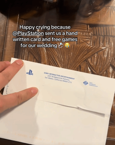 最令人动容的,是一张精心设计的贺卡——卡片上既有工整的手写祝福“新婚快乐!”,也印有官方落款的正式致意,新人姓名被清晰标注,细节之处尽显尊重与温度。新娘Kirsten在社交平台配文中难掩欣喜,称这份心意“格外贴心”,并坦言自己从童年起便是PlayStation的忠实玩家。