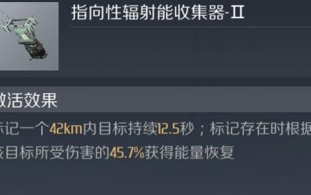 超级装置(能量回复比例随驾照等级提升,图示为最高等级加成):可锁定42公里范围内目标,持续12.5秒;标记期间,依据目标所受伤害的45.7%恢复自身能量。