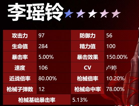 抽取建议:三颗星——四颗星(该角色为限时普池UP角色,常规池也可抽到,建议缺少李瑶玲且抽卡资源较充足的玩家抽取,以完善角色图鉴)。