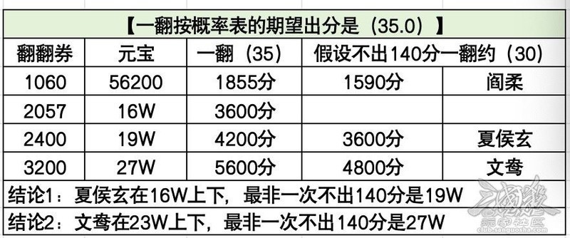 夏侯玄在去年的环境中无论是斗地主还是排位赛都属于顶尖水平,但随着版本更替,如今已退居二线。在斗地主低分段的弱势武将局中仍有可玩性,但在高分段无论是地主还是农民方都显得有些吃力。本赛季的山河图表现尚可,仅凭潜龙天赋便能轻松通关噩梦四。若因去年的表现而期待他今年仍有同等发挥,可能会稍感落差。目前翻翻乐的首次翻牌期望出分率为35.0,据此估算夏侯玄大约需要16万左右,相比首发价格28万已算实惠。若按最不利的情况计算,即140分内未出将,则需约19万。