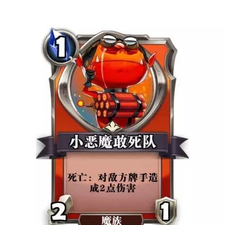 小恶魔虽仅1费且无法成长,看似平凡,但其亡语效果十分实用,死亡时可直接对敌方英雄造成两点伤害,有效压低血量。即使单独使用也不亏,若在阵亡前换掉对方随从或蹭血,收益更佳,灵活不卡手,是张稳定高效的节奏牌。