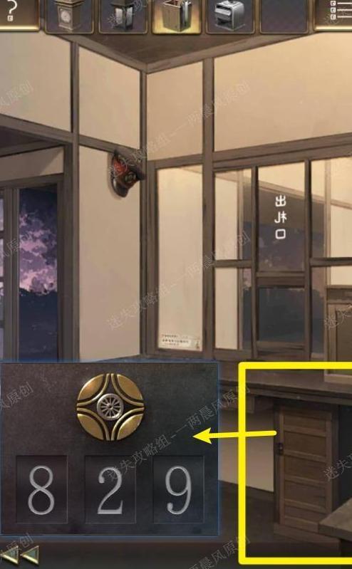 计算纸条上的答案,加上帽子符号对应的数值,得出829。点击房间右下方上锁的柜子,输入密码829打开,获得。