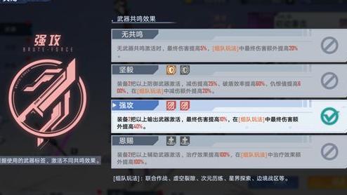 选择武器时应结合角色定位。若主攻输出,建议配备至少两把攻击型武器,触发强攻效果,提升最终伤害;若为坦克或辅助,则应搭配相应类型武器,激活对应的共鸣效果,增强防御或支援能力,从而充分发挥角色在战斗中的作用。
