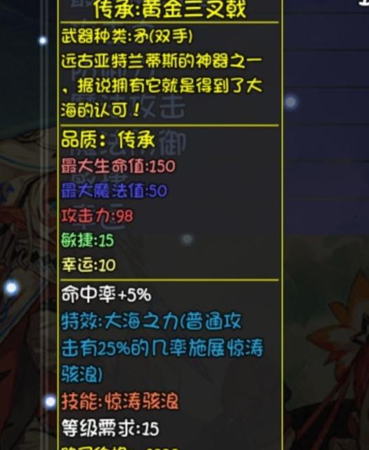 前期山林镇声望建议保留,用于兑换霸气。临海镇声望达到2000后与镇长对话可获惊喜奖励——破旧的三叉戟,修复后形态焕然一新。修复所需奇异宝珠可通过分解粉末或完成入魔天师任务获取。