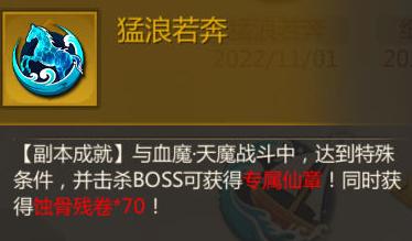 奖励包括猛浪若奔仙章和七十余份蚀骨残卷。