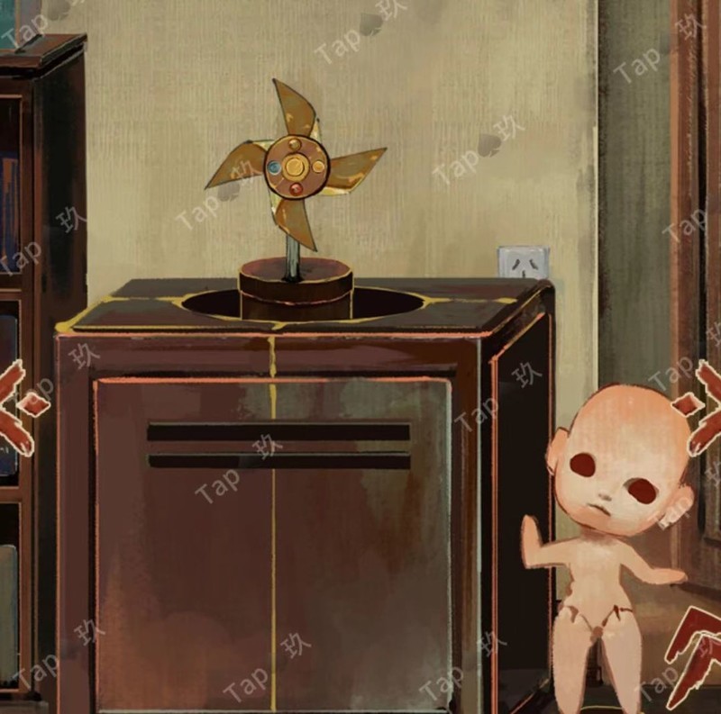 点击风车放置弹珠,安装转动装置,拾取眼球钥匙。
