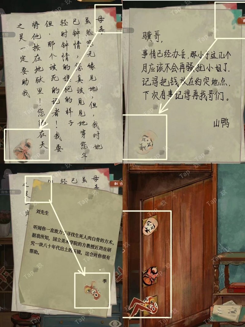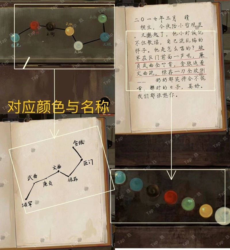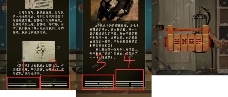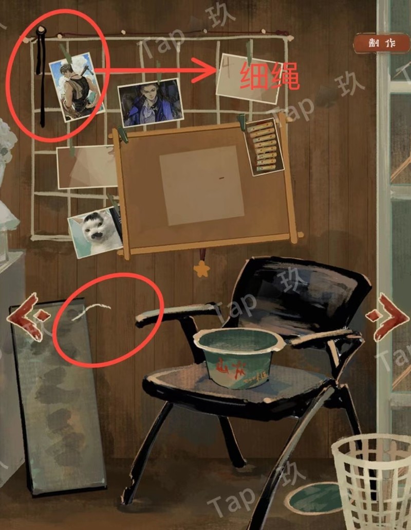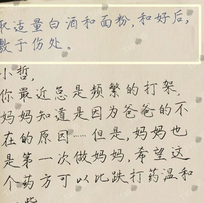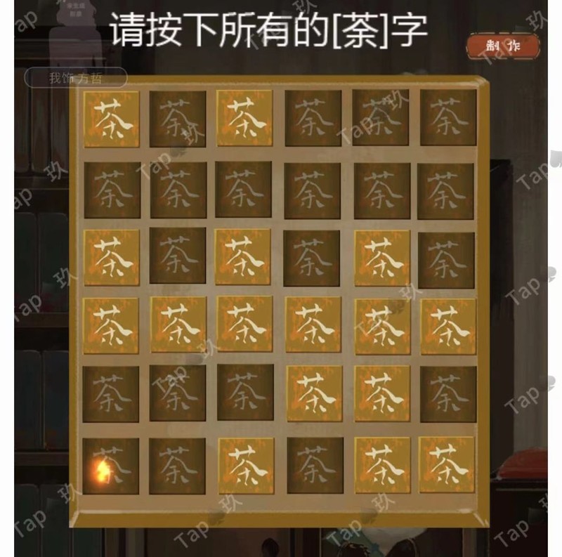 点击白胡子老人,使用道具,打开抽屉内的书籍,获取,找出其中的错别字,收集文字线索。