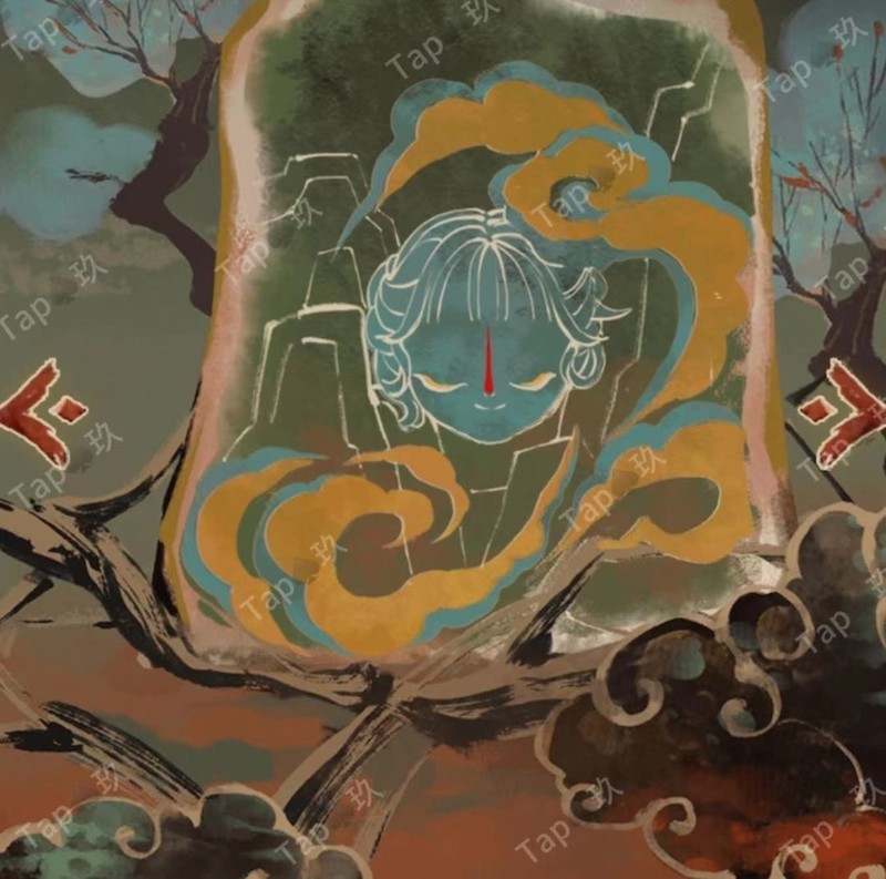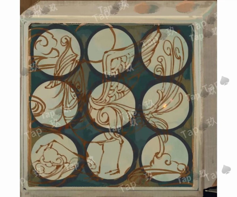 点击右侧石碑,依次放置玉石1至4,获取图案线索。