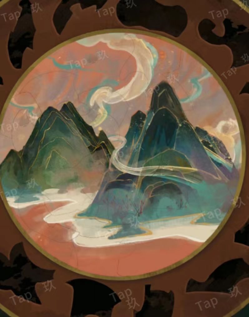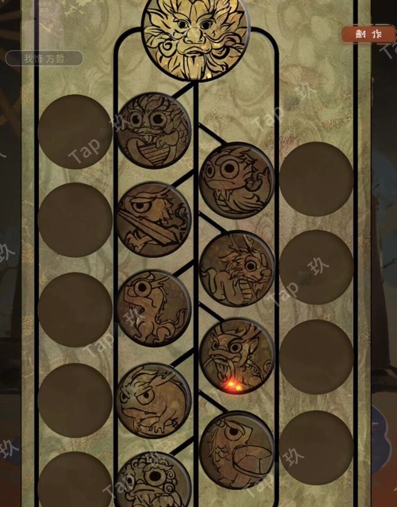 点击图中机关,将龙与动物结合所生的孩子带去找母亲,完成任务后获取,再用此笔点击壁画即可。