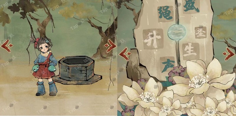 点击右侧拾取,投入水井获取,交给小女孩获得,再将种子投入井中。