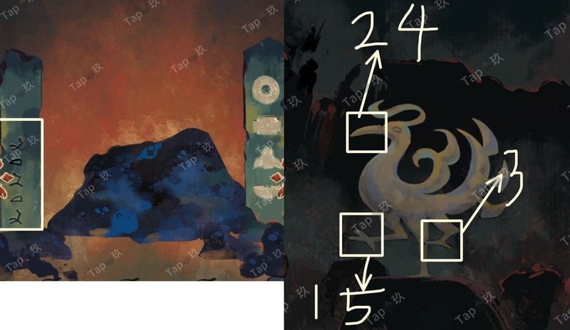 根据石碑图案,按顺序点击赤鸟(数字为点击顺序)。