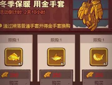完成悬赏任务可获得手套,奖励有25%概率开出金手套,最多5次必得一次,金手套可用于兑换金鱼。