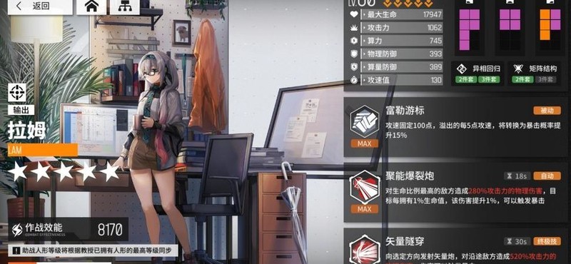 赫波自身输出可观,待角色等级提升并积累足够橙色算法后,可将其培养为主力输出角色。
