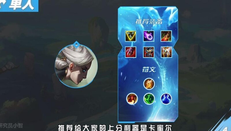 单人路冲分推荐英雄为卡蜜尔,附上出装符文搭配,供玩家参考使用。