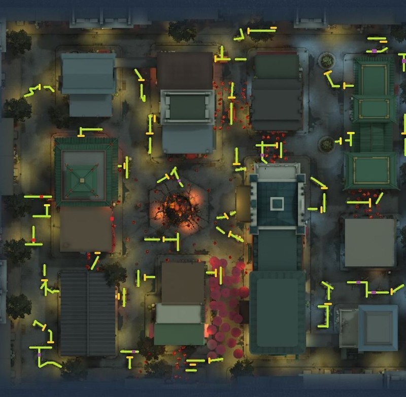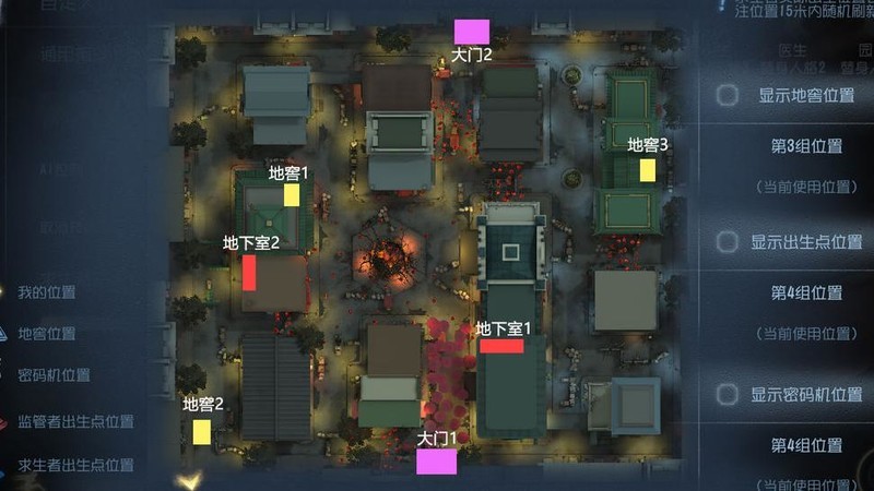 唐人街设有三处地窖刷新点、两扇逃生门及两个地下室。