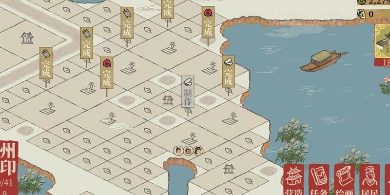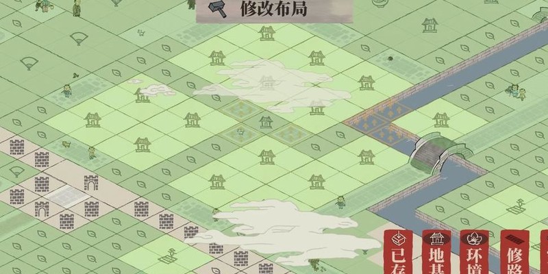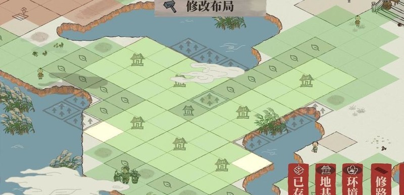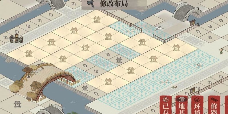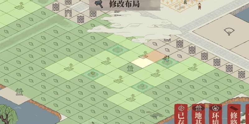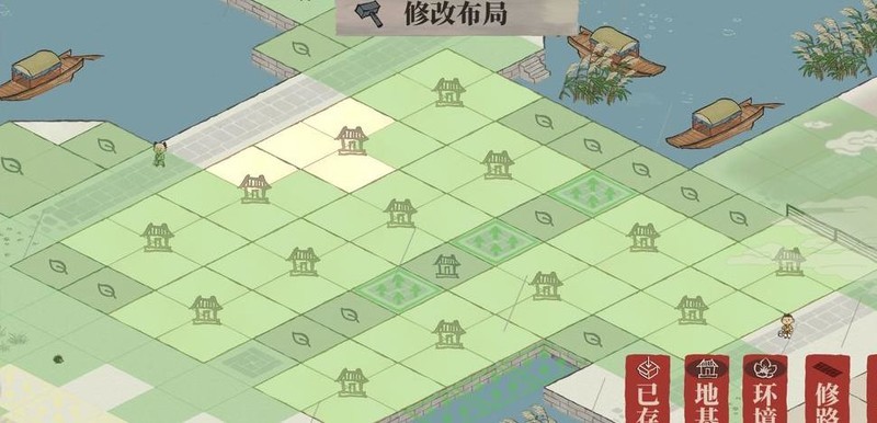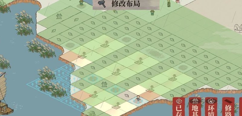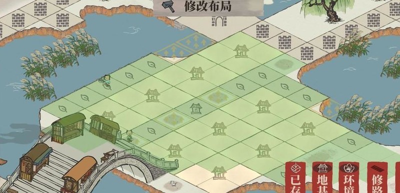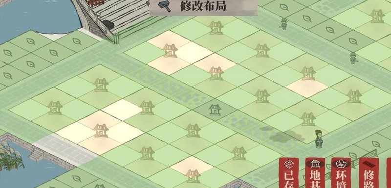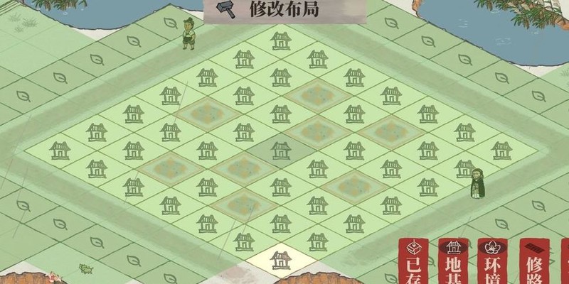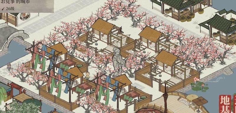 雕像仅占一格,织布坊与裁缝铺各占两格,空间局促难以对角安置,只得用桃花填补空位。
