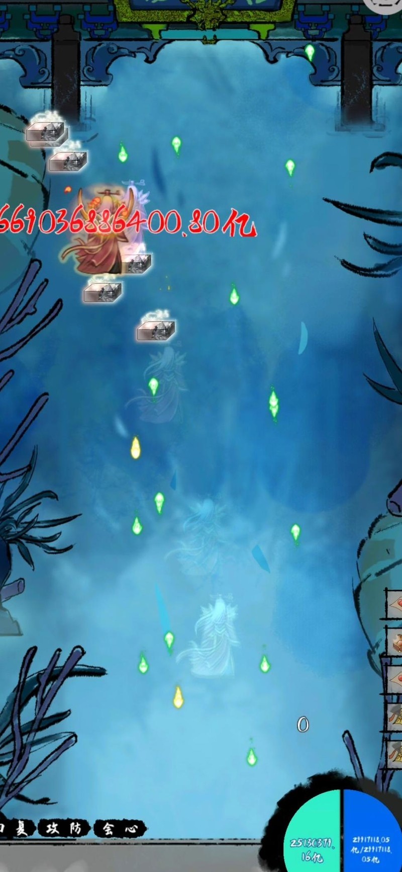 使用方法如下:替换掉低效装备,镶嵌一颗珍珠和若干普通砖头(至少一珠一普),令人意外的是,砖头竟能触发多弹幕远程攻击。更诡异的是,原本仅有一万攻击力的法宝,其子弹伤害竟受到角色自身攻击的隐性加成,这种加成在面板上无法体现,却让实际输出飙升。随着砖头数量增加,加成呈指数级增长,弹幕伤害可瞬间跃升至千万乃至上亿。后期攻击力提升后,爆发更为恐怖。当然也可选择近战撞击,但接下来还有更具趣味性的玩法等待开发。此时输出已然达到秒天灭地的程度,随之便可切换全新战斗模式。
