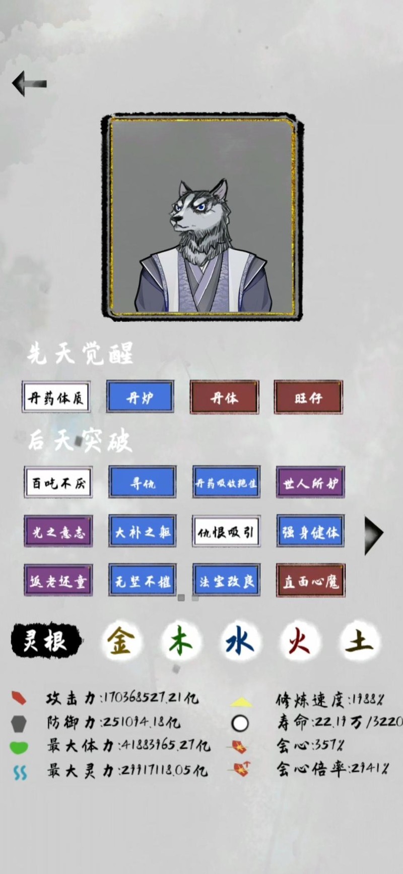 开局优先选择先天丹炉与丹体为核心,灵根数量越多越强,五灵根堪称最优之选。后天发展以世人嫉妒光之意志为主导,主修散仙路线,注重天赋获取与频繁战斗积累资源。属性上优先提升天赋、丹药产出、体力与寿命,伤害加成可侧重对妖魔类敌人生效,法宝、防御、召唤、符箓攻击等非核心手段仅在不得已时选用。由于是丹修职业,暴击与暴击率极容易堆叠至高位,全程无需依赖嗑药或符箓应对怪物,战斗自给自足。若追求稳妥也可适当补充辅助手段。搭配方式多样:丹炉配丹体辅以寿命、体力与攻击力,走稳定输出流;或选择天命之子便于后期刷取极限天赋,冲击巅峰战力,无论哪种路线,整体强度都非常可观。