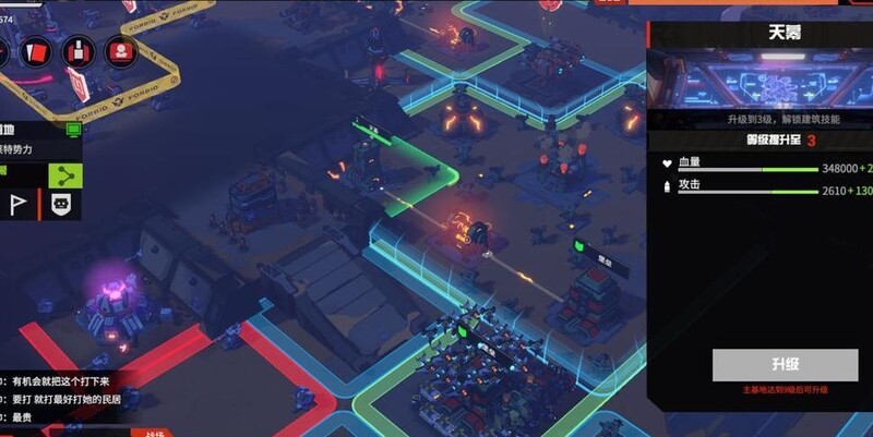 分基地可升级,蓝色围挡范围内地块享受25%伤害减免。