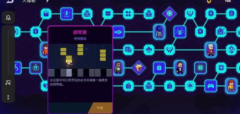 天赋树中的天赋可自由开启或关闭,这是我最近偶然发现的。新手时期常会遇到钢琴房卡关的情况,此时只需将其关闭,便不会再遭遇,让游戏进程更加顺畅。