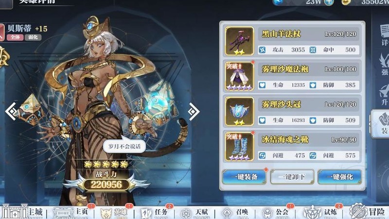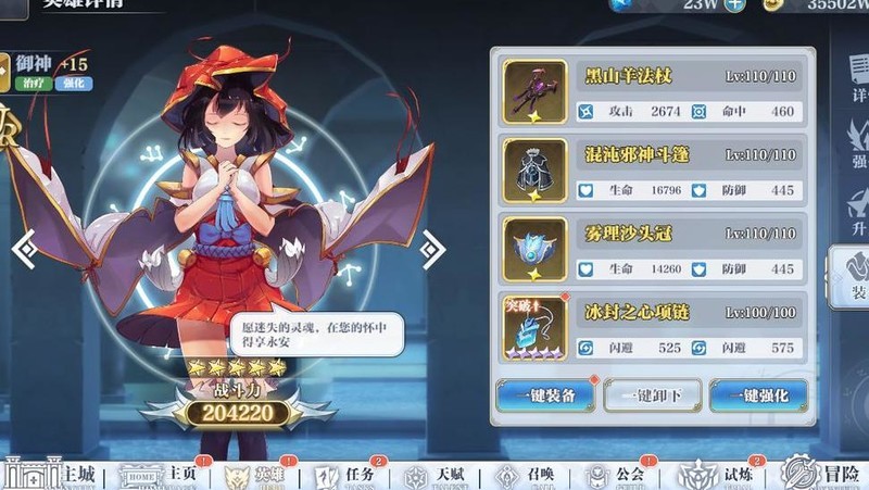 阵容与装备可参照上述配置。部分关卡需手动操作,重点应对敌方两大主力阵容之一的路西法诅咒队,其天赋为冰冻、强化与陨石。开局务必坚持至光耀释放大招,否则易被毒杀。第一轮大招释放后,立即手动施放冰冻与眩晕技能,分开控制敌人,眩晕应精准命中后排。成功扛过首轮输出后,通关概率极高,此战御神必须上阵。
