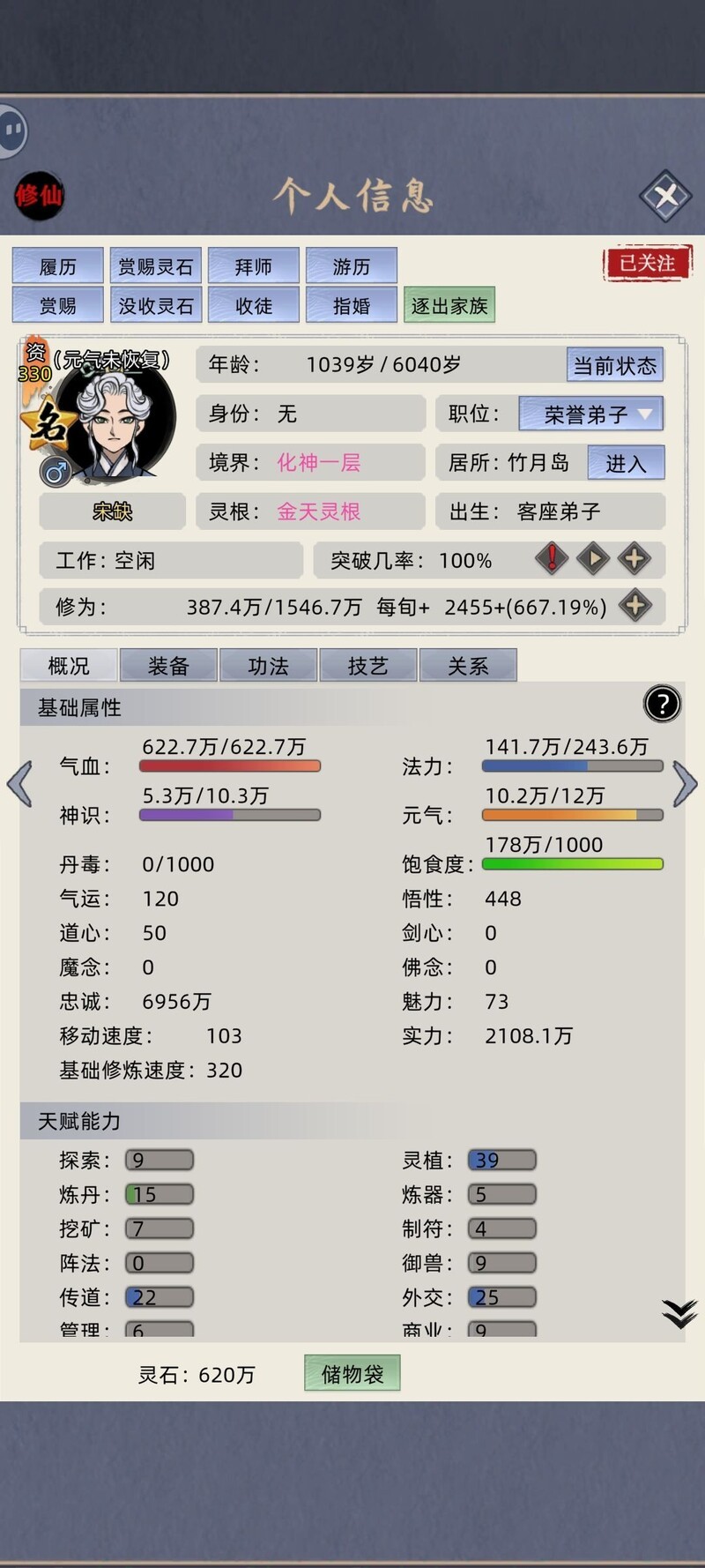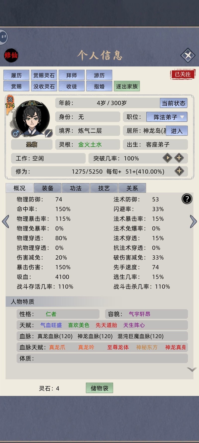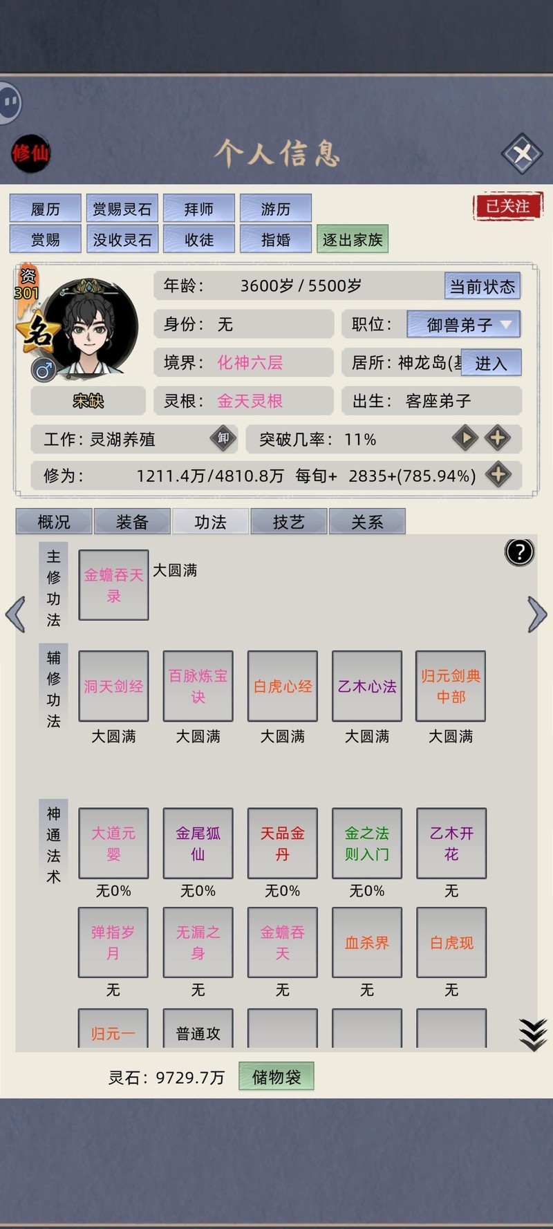 最后一定要暂停时间,上交化神弟子并赏赐物品提升忠诚度。检查性格是否为高傲或枭雄,若是则立刻存档退出,重新登录即可。