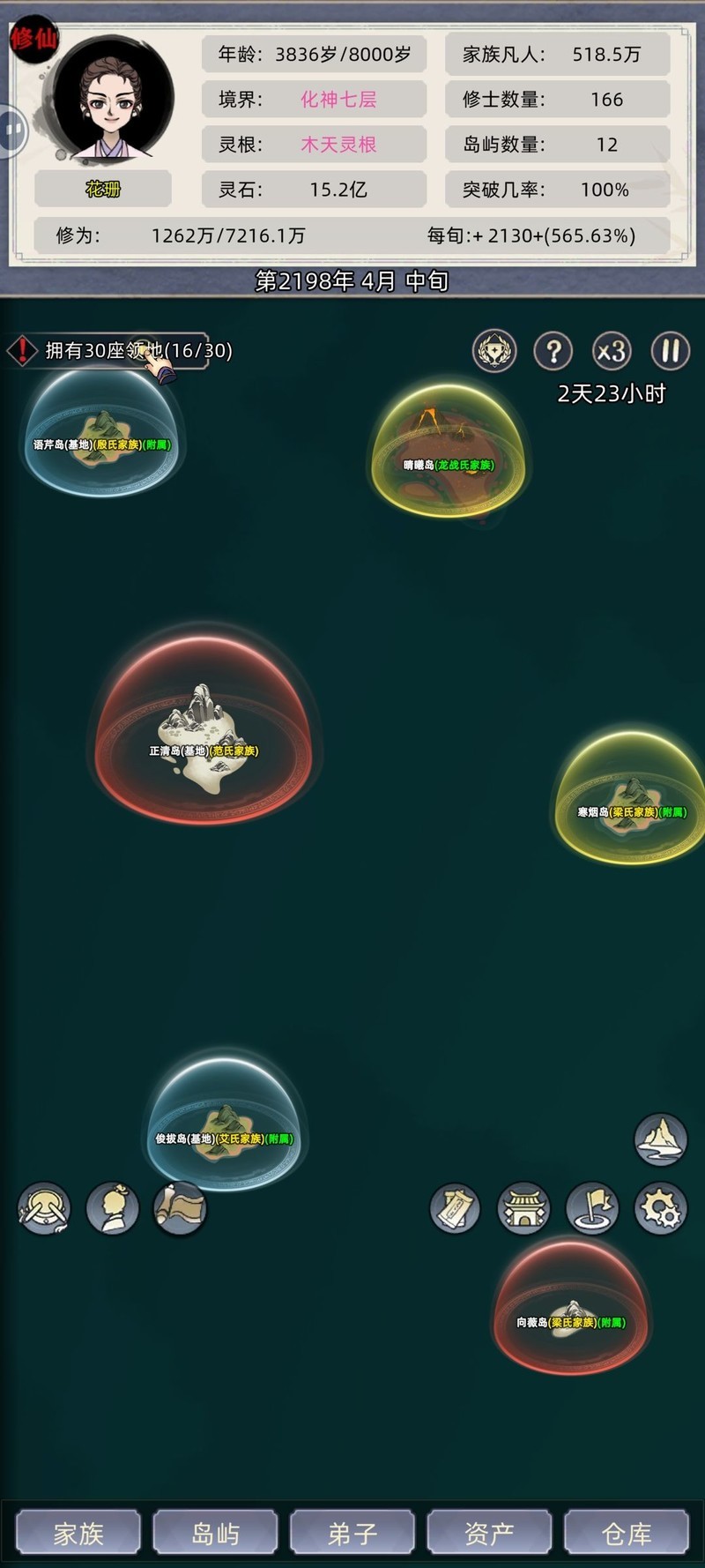有可能出现各种情况,尤其要注意第三种。立即将你的化神调离主岛,随后进行分家,你会发现电脑化神出现在新的附属分家中。