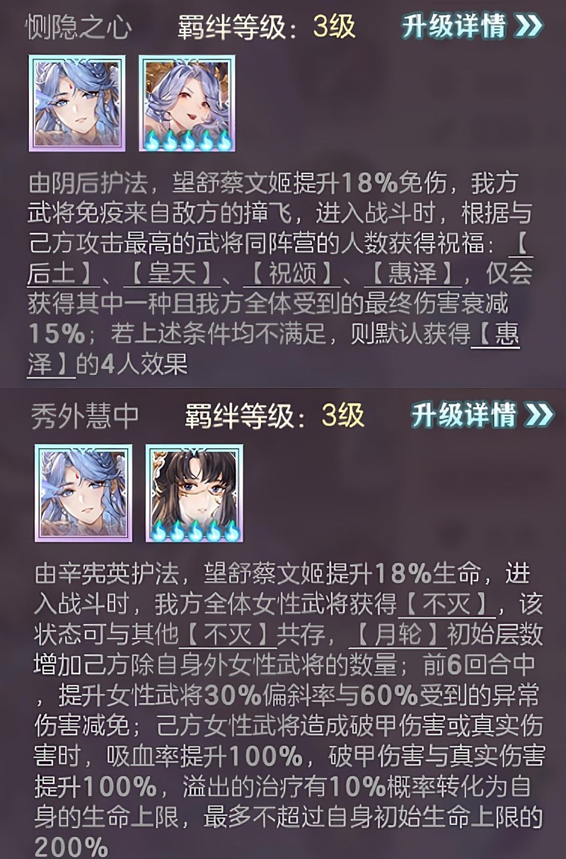 顺便提一下,望舒蔡文姬的两位羁绊武将为阴后与辛宪英。