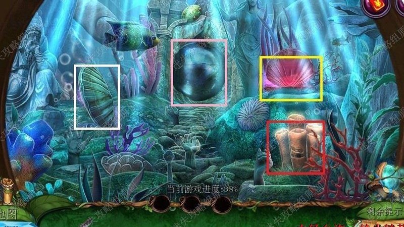 红圈取得硬币,黄圈获得袋子,将硬币放入袋中。白圈拿到旧衣物后返回红圈,用旧衣和钱袋作用于管子,触发剧情获得金属箭头。用金属箭头处理白圈的贝壳,得到珍珠及两朵发光花(1、2)。将珍珠用于黄圈的贝壳,再得两朵发光花(3、4)。点击粉圈,放入四朵发光花,开启小游戏。