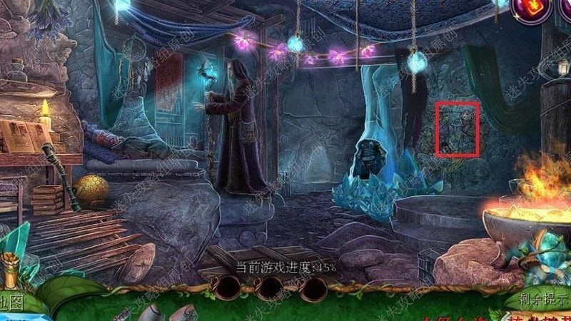 集齐所有物品后,打开咒语书,点击全部咒语并加入绿色药剂,获得幻想咒语。前往祭祀房间使用该咒语,即可进入密室场景。