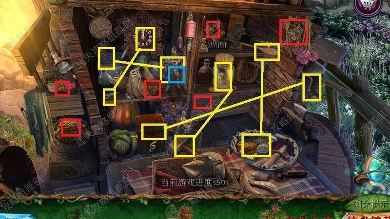 红圈提示门的顺序,黄圈获取磁铁与挂钩,绿圈取得钩环。